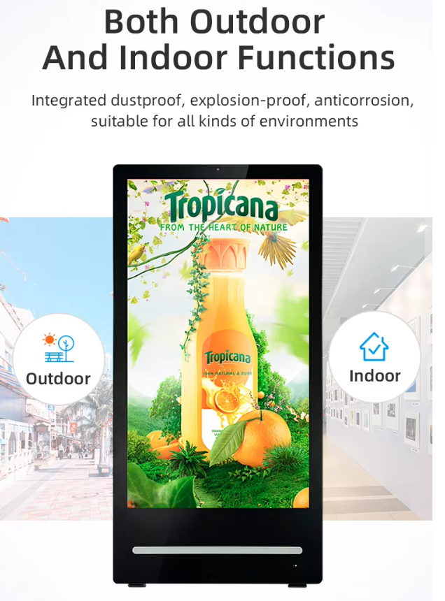 Външен 43 до 86 инча Стоящ на пода 2500 nits павилион 4K Digital Signage